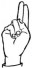 На ћирилици написано МИЛАН КРГА састоји се из 9 слова [?]. Исписано ћириличном једноручном азбуком за глувонеме: